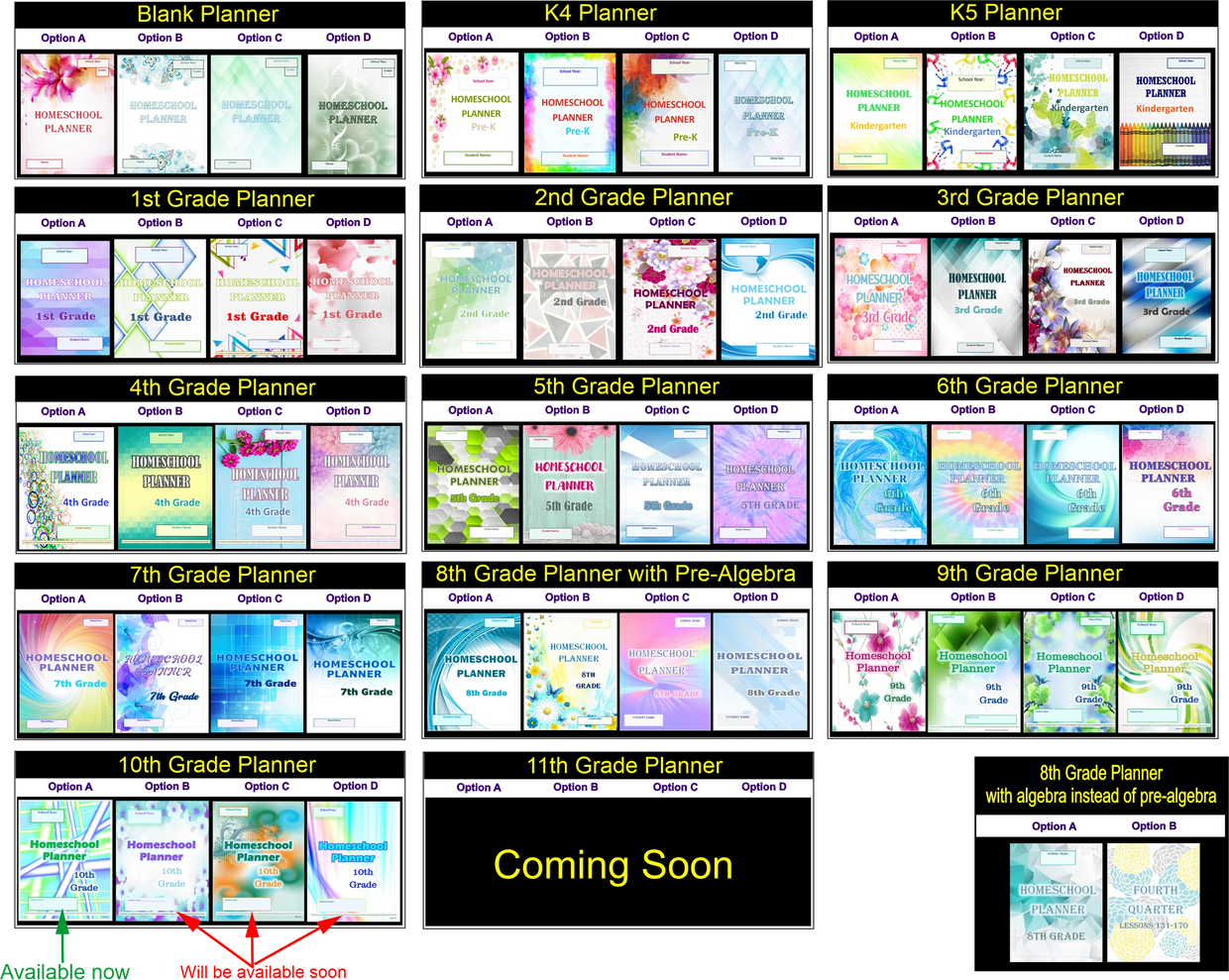 These Homeschool Planners help guide you through your curriculum and allow you to easily keep track of what is assigned, what is due, and what needs to be graded and recorded.